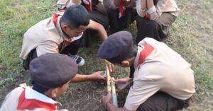Gambar 2 Pelatihan Tali-Temali dan Membuat Tiang Bendera Kaki Tiga